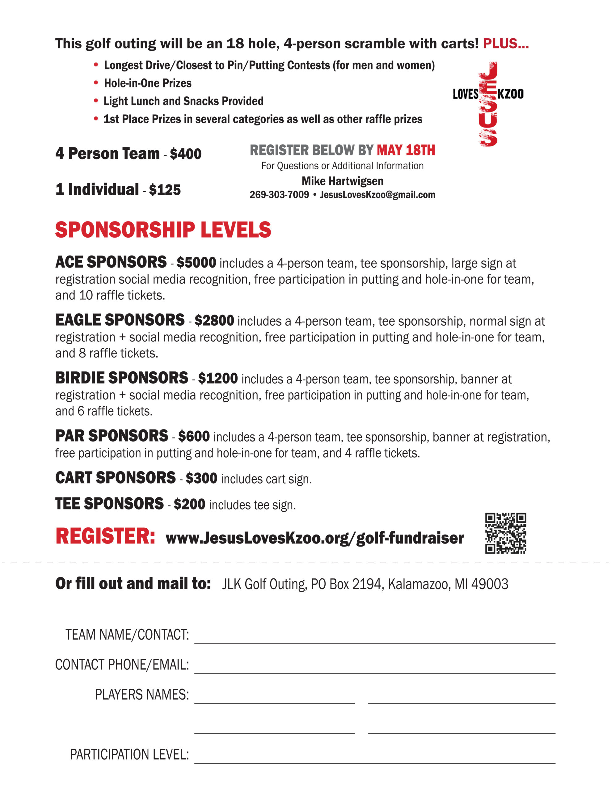 For Questions & More Info Contact: Mike Hartwigsen at Jesusloveskzoo@gmail.com